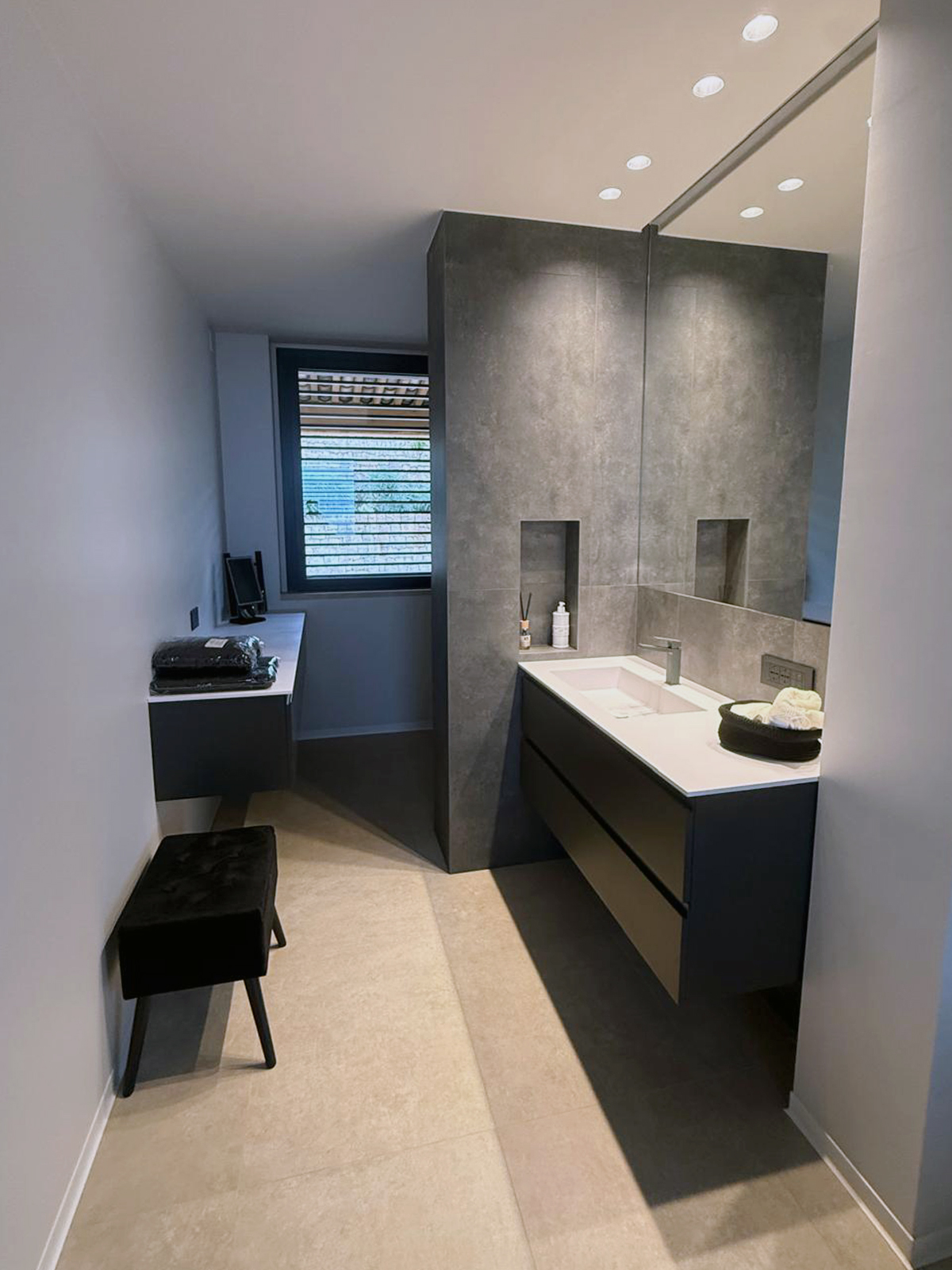In questo intervento abbiamo convertito un locale commerciale dalle metrature ridotte in un’agenzia immobiliare moderna e funzionale. Per ottimizzare i volumi, abbiamo lavorato su pareti in cartongesso dal design minimale e su un’illuminazione integrata che amplia visivamente l’ambiente. Il risultato è uno spazio accogliente e professionale, dove ogni centimetro è stato sfruttato per garantire comfort a dipendenti e clienti, senza rinunciare a un’estetica contemporanea.