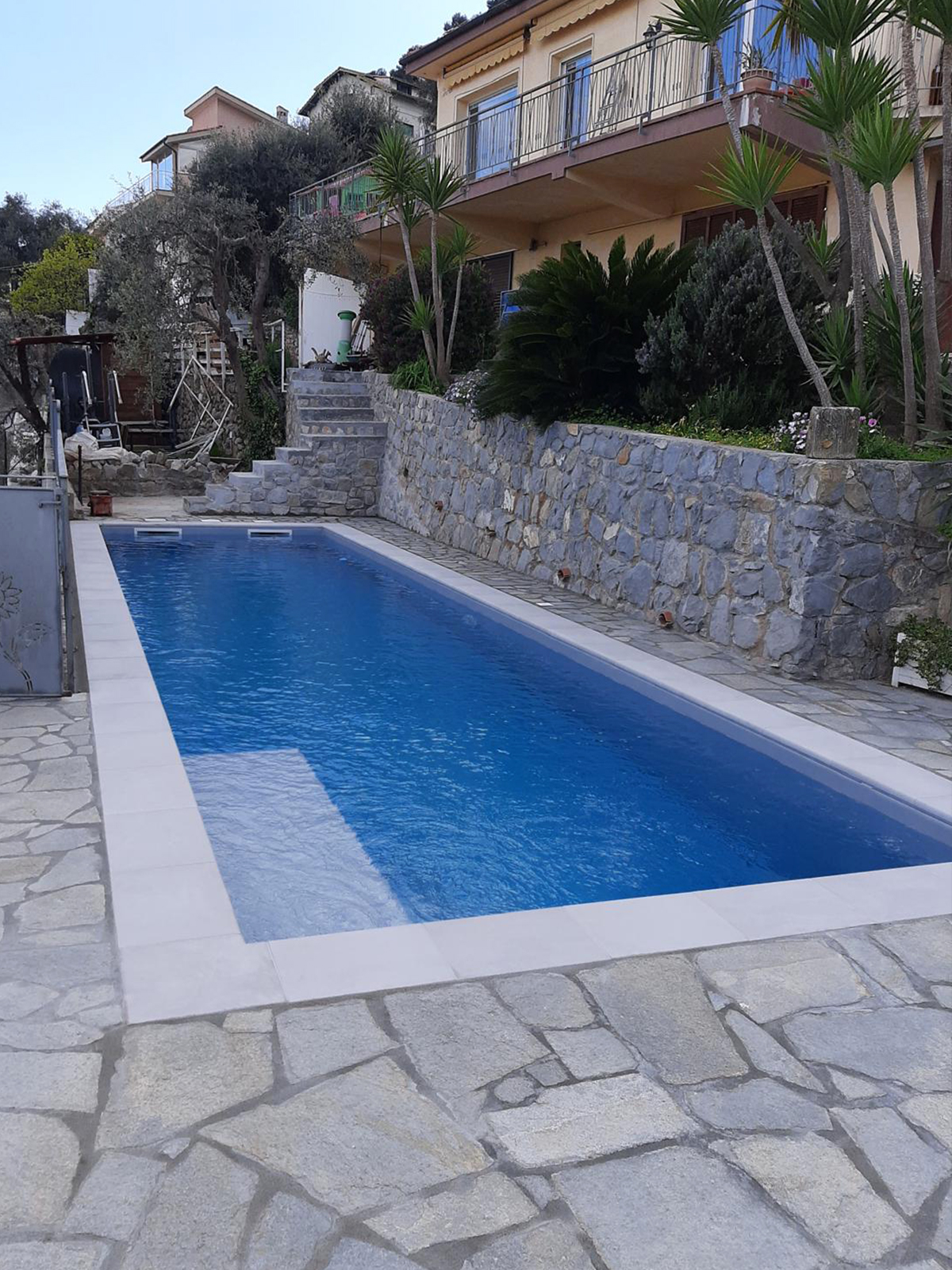 Il progetto ha riguardato la riqualificazione completa dell’area relax di una villa privata. Siamo intervenuti sulla struttura della piscina e sulla pavimentazione circostante, utilizzando materiali tecnici di fascia alta resistenti all’usura e agli sbalzi termici tipici della nostra zona. Oltre al consolidamento strutturale, abbiamo curato la posa dei bordi e dei rivestimenti per integrare perfettamente la piscina con l’architettura della casa, trasformando un’area esterna datata in un angolo di benessere elegante e solido.
